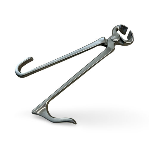 Choose Options This 10" one-handed foal nipper has a hook that goes over the top of your hand and finger loops for your fingers, enabling you to open the nipper with only the one hand while you hold the hoof of the fractious baby with the other hand.