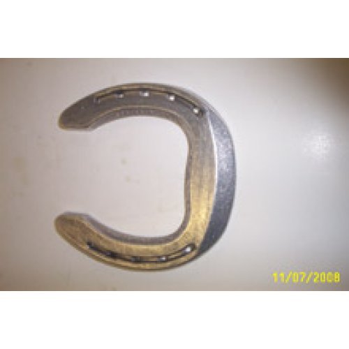The NBS addresses the bio-mechanical needs of the equine hoof for support and protection in a domestic environment. It offers the horse the most natural foundation for optimal performance with minimal stress. The unique rolled toe design and wide sole relief area combine to give the horse optimum comfort. Because there is no steel insert, the toe can wear back as the hoof grows out, keeping the horse in "Natural Balance" from one shoeing to the next. The patented NBS shoe, when applied with our suggested hoof preparation guidelines, will help eliminate hoof capsule distortion.